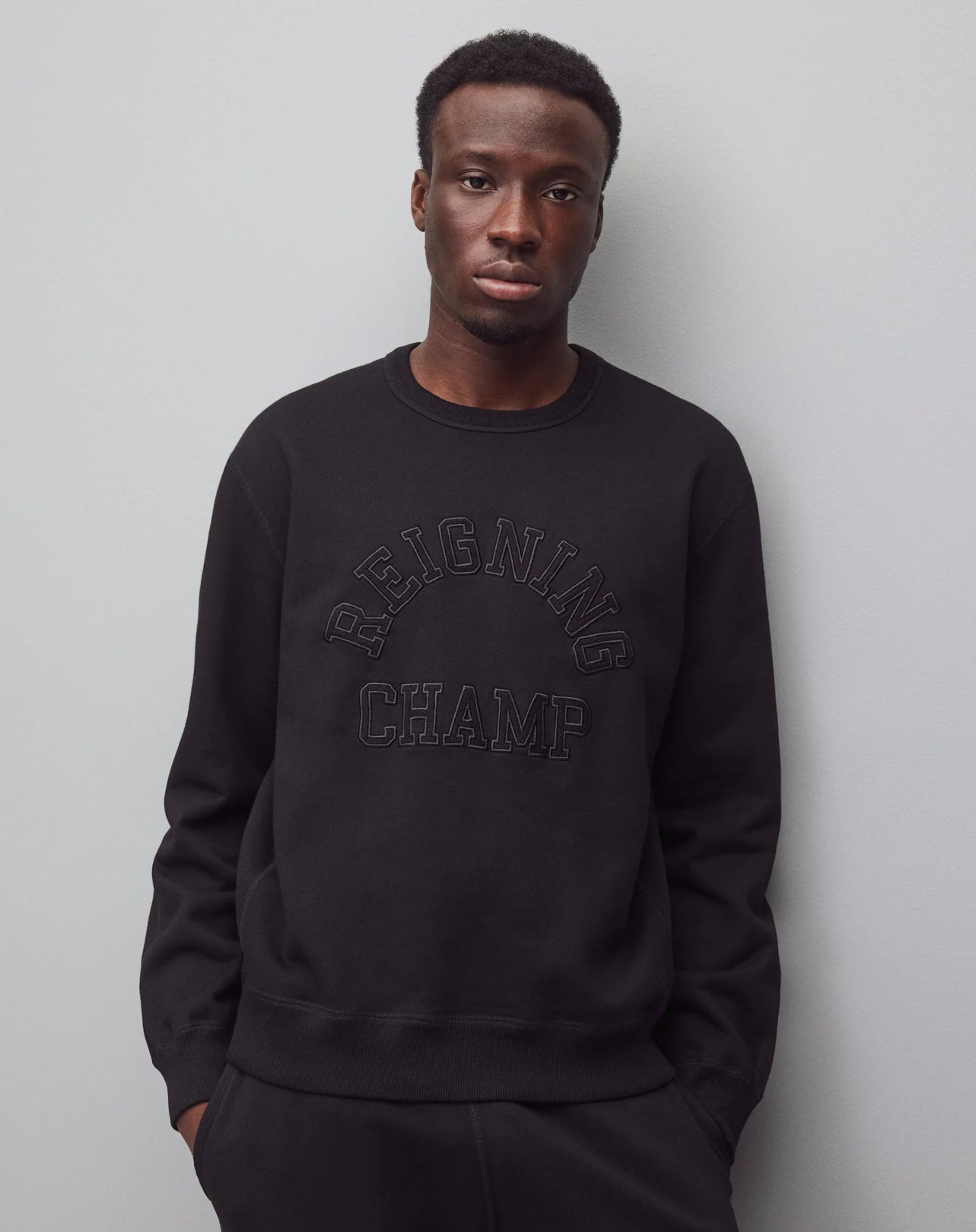 Reigning Champ Midweight Terry Arch Logo Standard Crewneck Men Black